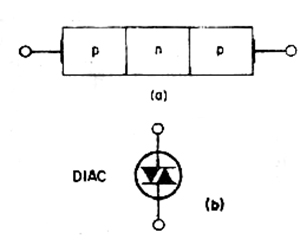 Figura: Diagrama de junturas (a) y simbolo esquemático (b) de un diac .