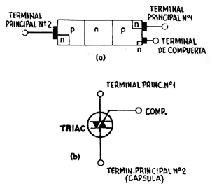 Figura : Diagrama de junturas (a) y símbolo esquemático (b) de un triac .