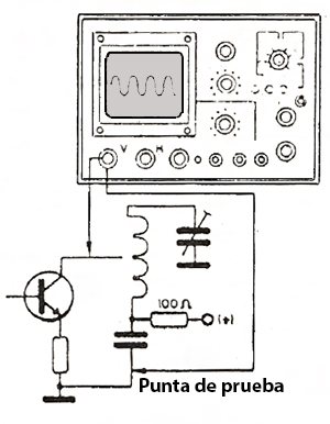 La verificación del funcionamiento de un oscilador de este tipo puede ser hecha con un osciloscopio de modo directo según muestra la figura siguiente. Se puede entonces medir tanto la frecuencia de la señal que está siendo generada como también su amplitud.