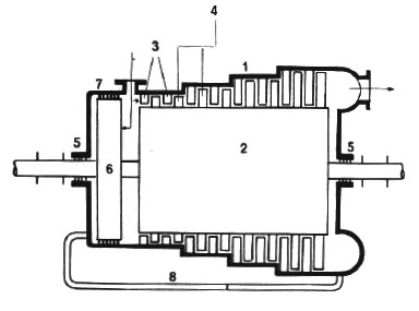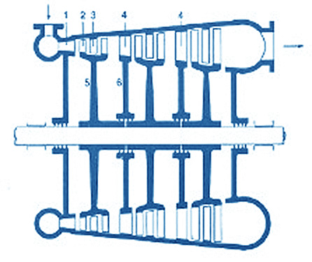 | Turbine case, carcasa de la turbina; distribuidor, anillo de rodete |