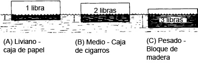 - La caja de papel pesa 1 libra (0,45 kg) y se hunde a una profundidad determinada.
